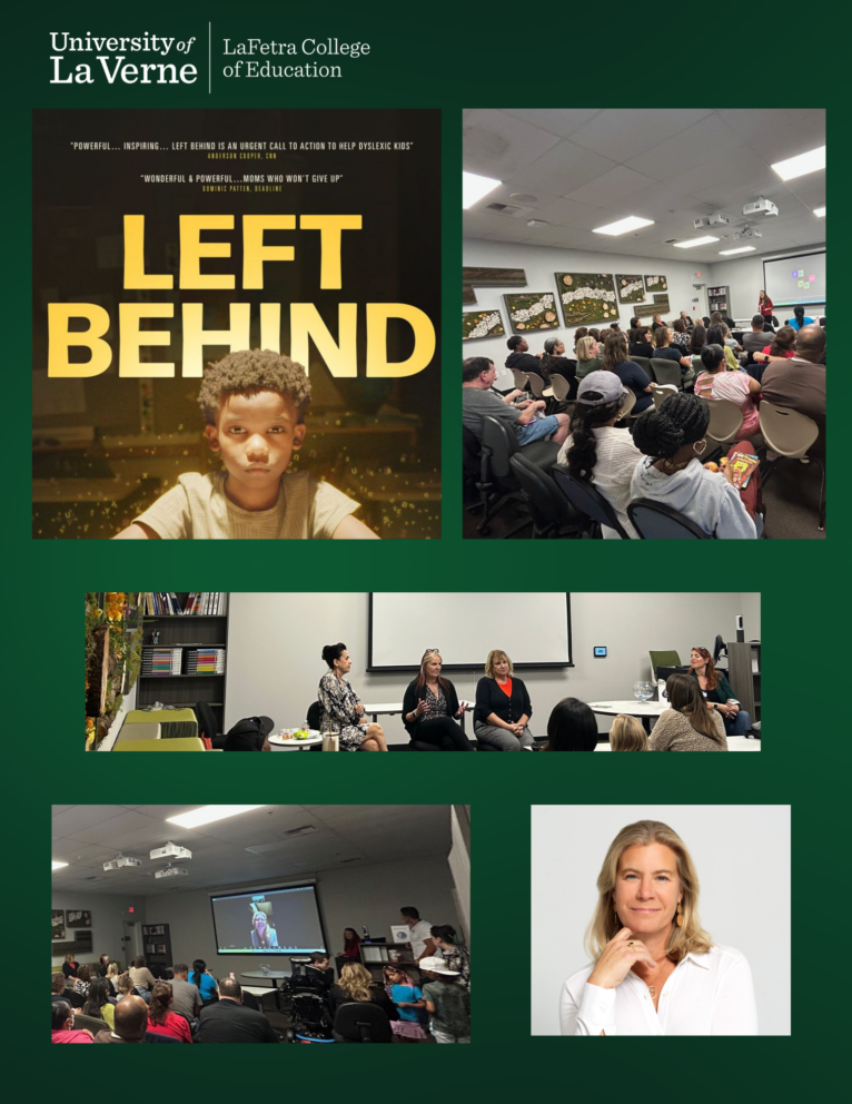 The LaFetra College of Education Collaborative recently hosted a powerful screening of Left Behind, a documentary that illuminates the challenges faced by children with dyslexia and the families and educators who support them. After recognizing the lack of resources available to children with dyslexia, filmmaker Anna Toomey directed Left Behind, an impactful film that continues to inspire meaningful conversations about advocacy, equity, and education.