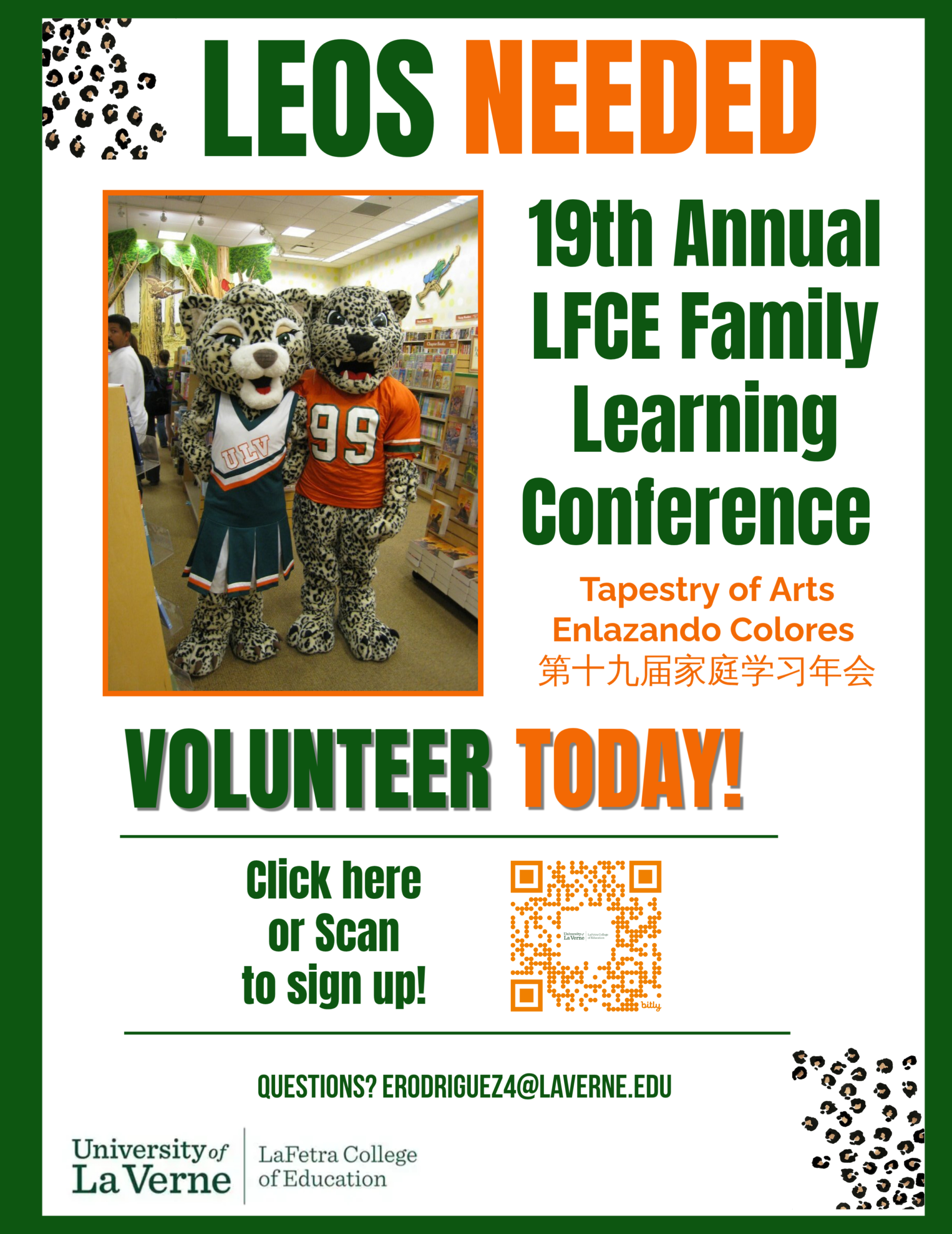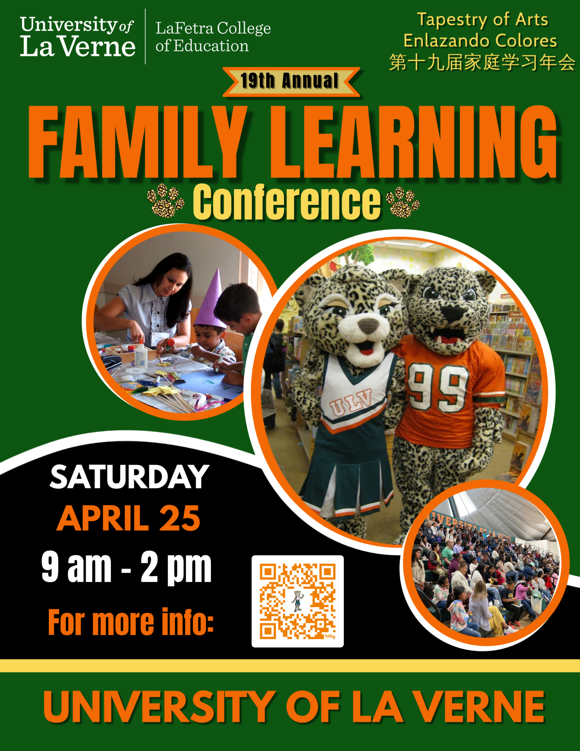 We are so excited to announce that the 19th Annual LaFetra College of Education Family Learning Conference will be held on Saturday, April 25, 2026, from 9 am – 2 pm at the University of La Verne!